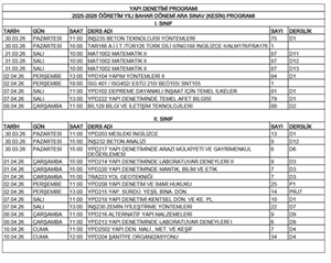 Değerli Öğrencilerimiz, Porsuk Meslek Yüksekokulu 2025-2026 Akademik Yılı Bahar Dönemi Ara Sınav Kesin Programı aşağıda yer almaktadır. Başka programlardan/birimlerden alınan derslerin sınav saatlerini doğru olarak öğrenmek için ilgili programın/birimin sınav takvimine bakmanız gerekmektedir. Programda yer alan YÖK zorunlu dersler (İNG188 İngilizce II, TAR166 Atatürk İlkeleri ve İnkılap Tarihi II, TÜR126 Türk Dili II) ve YÖK seçmeli derslerin (BEÖ155 Beden Eğitimi, ESTÜ210 Müze Kültürü, SNT155 Sanat Tarihi) sınavlarının derslik bilgileri kesinleştikten sonra ayrı bir duyuru ile sizlere duyurulacaktır. İlgili sınavlar ortak kitapçıkta merkezi olarak gerçekleştirilecektir. Bu nedenle herhangi bir çakışma söz konusu değildir. Tüm öğrencilerimize verimli ve başarılı bir sınav dönemi dileriz.